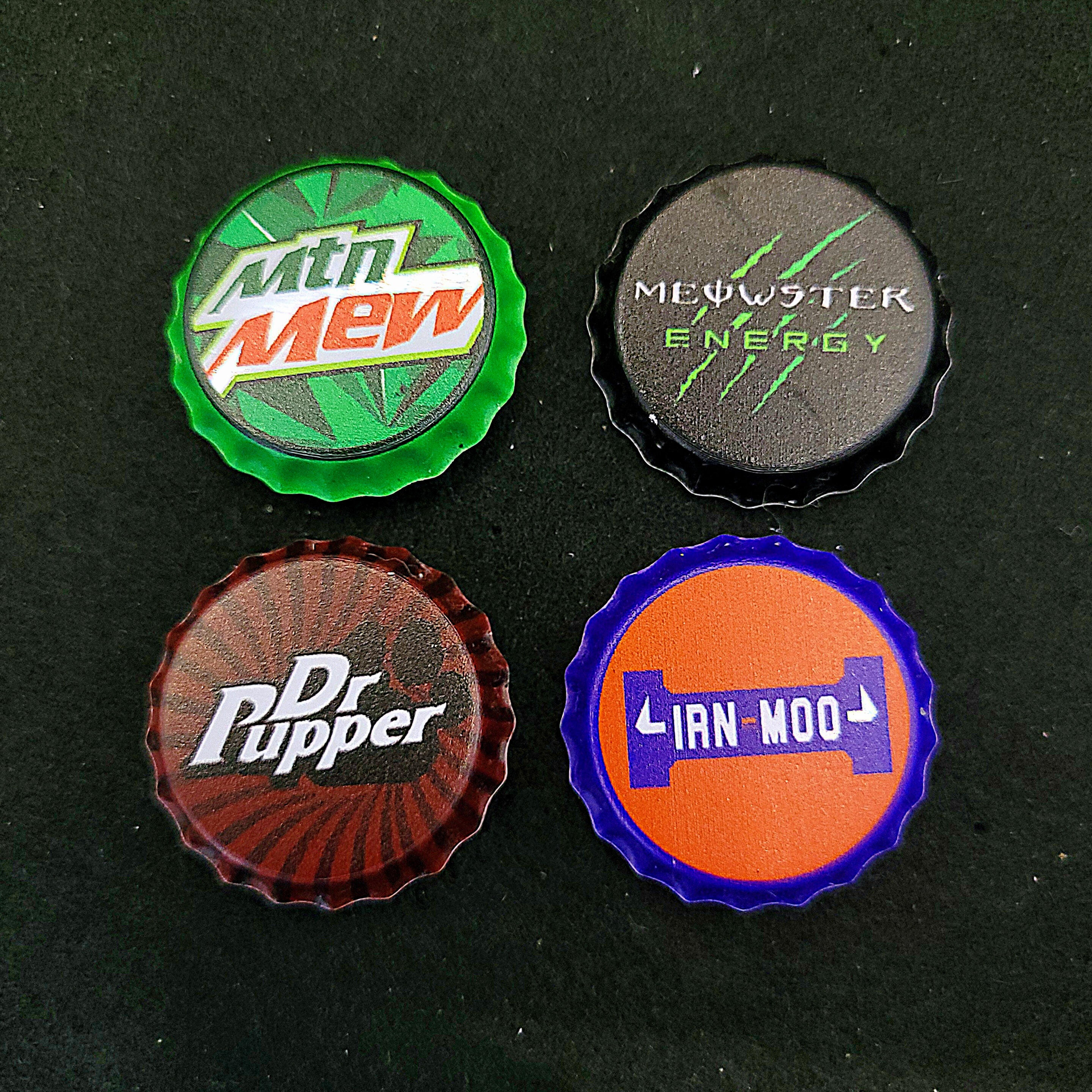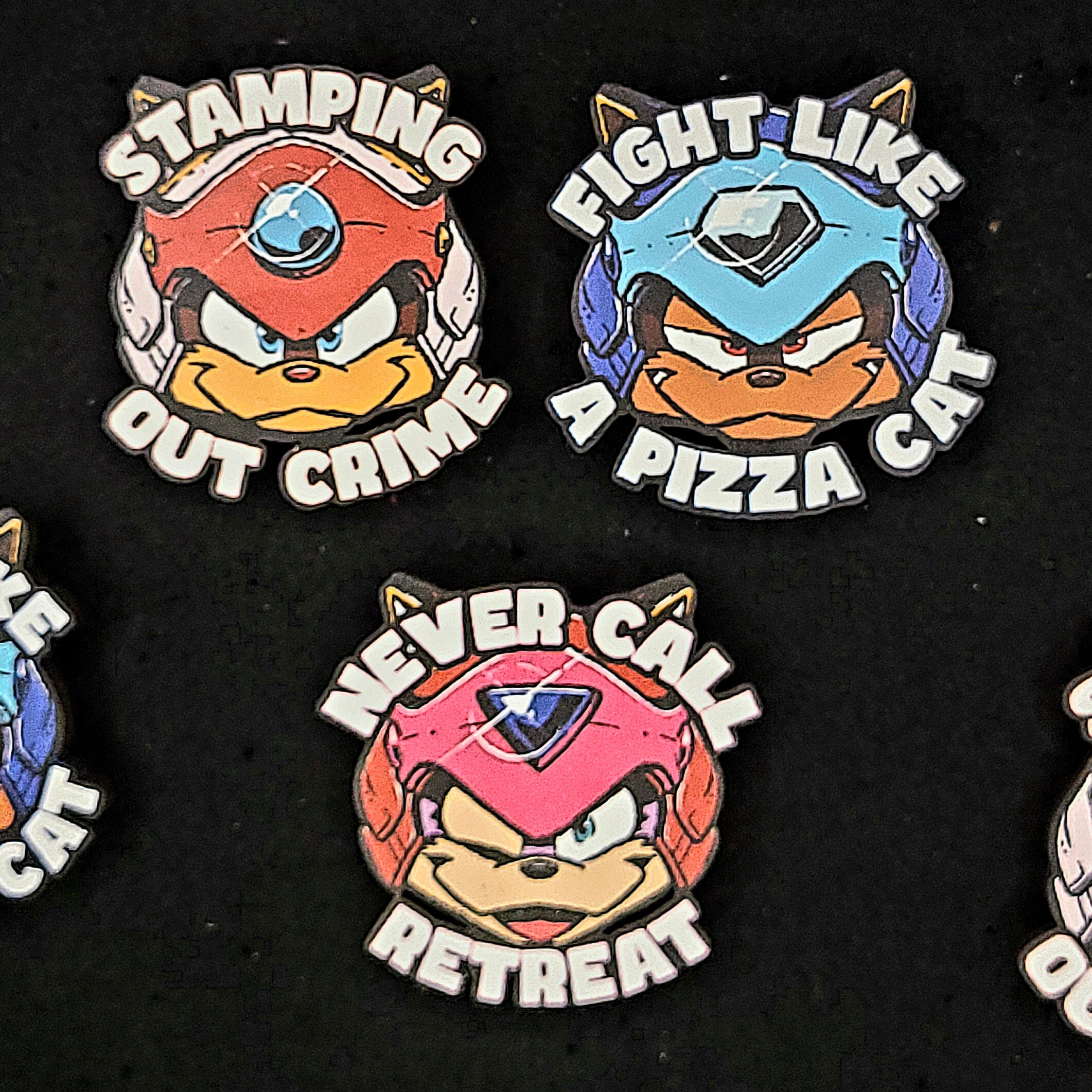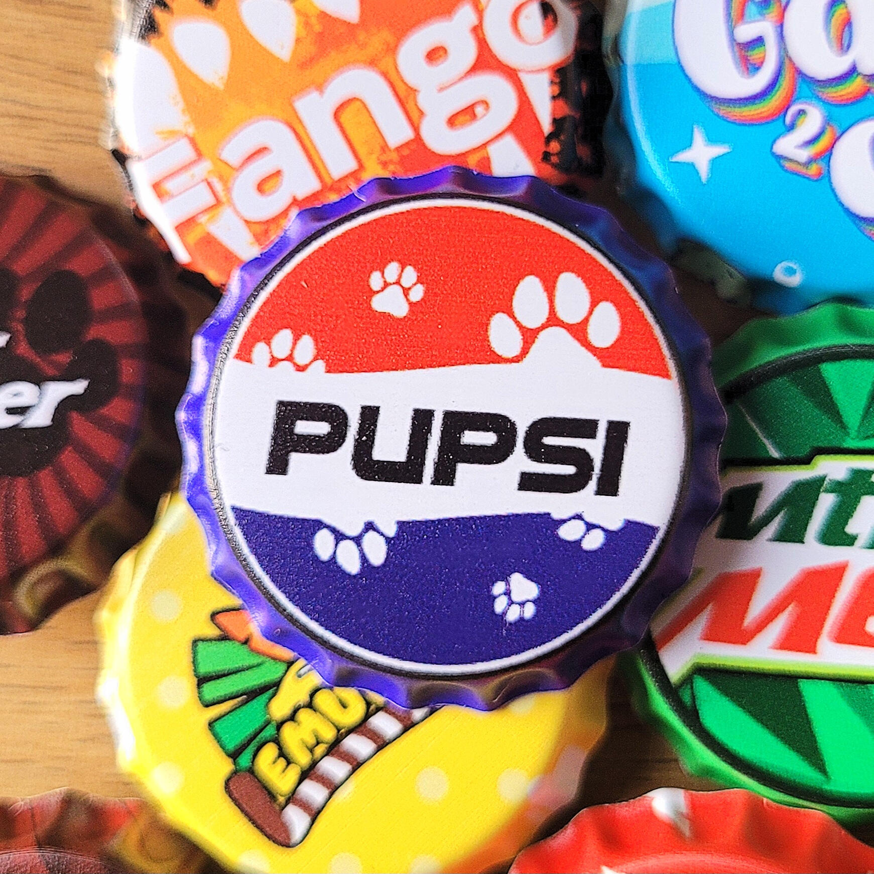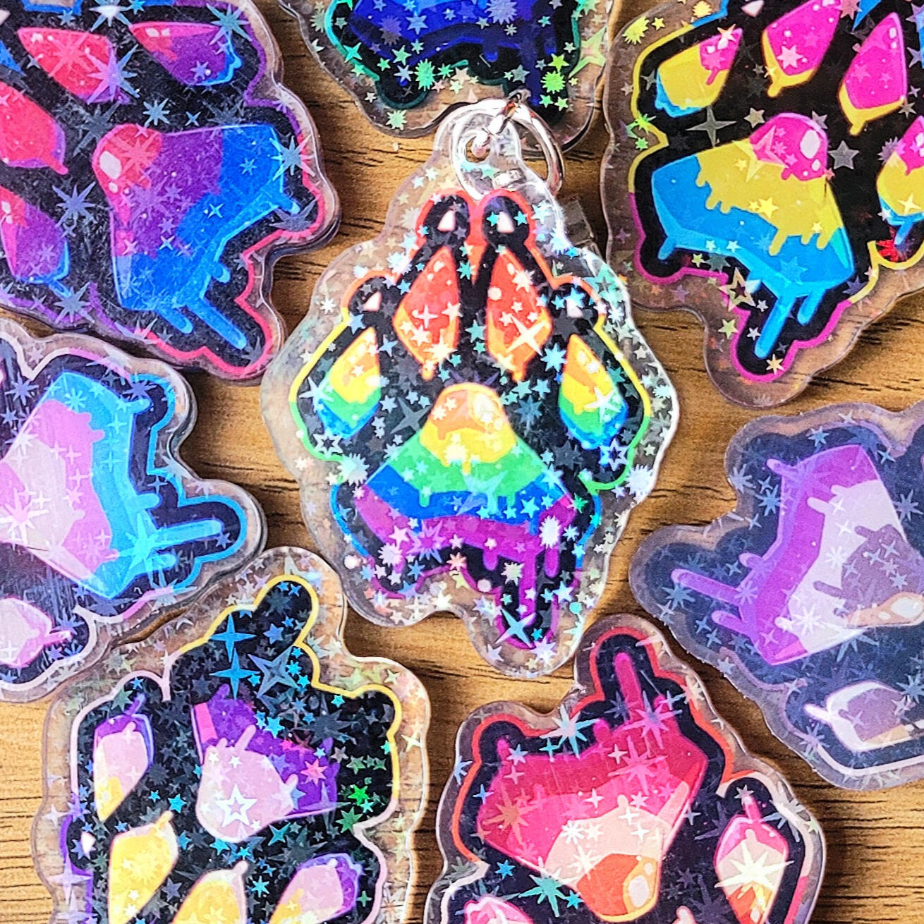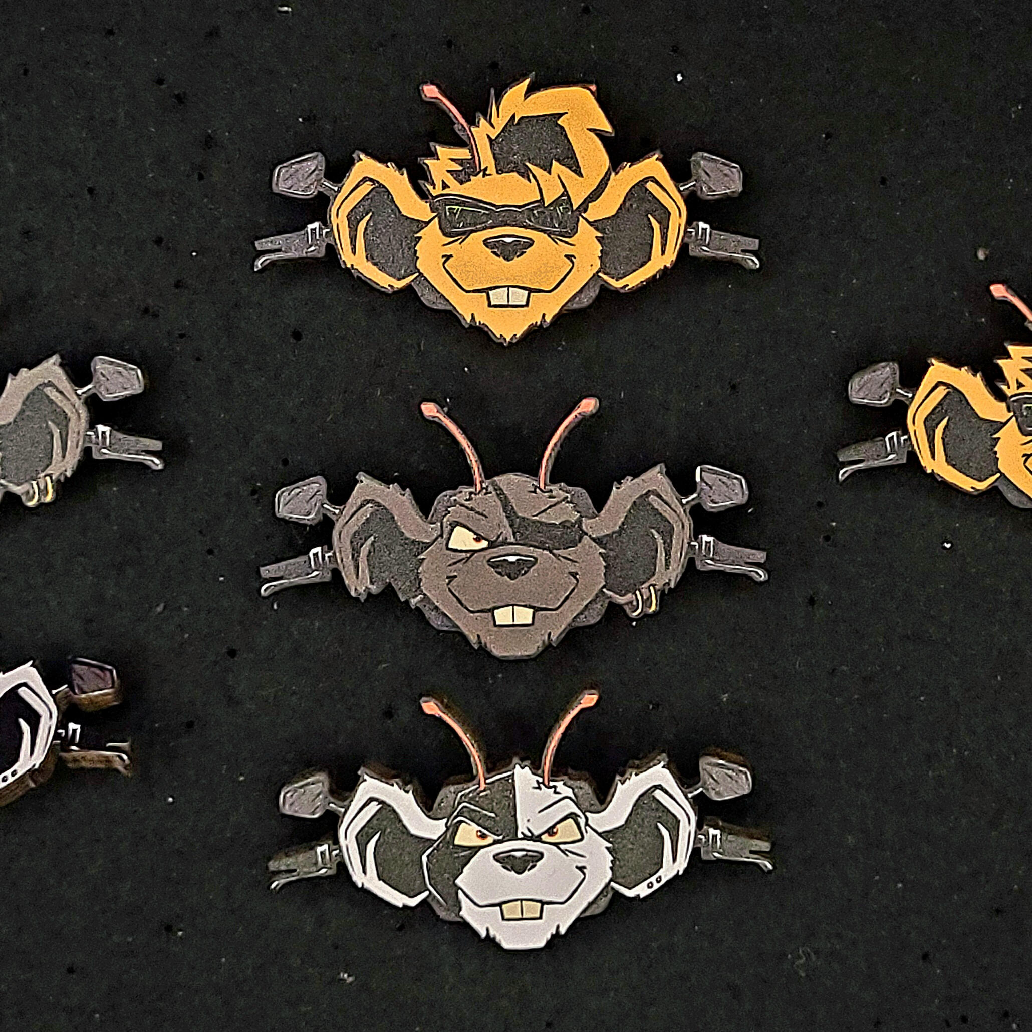 20+ designs are available in a variety of items, from standard acrylic keychains to wooden pins and humorous bottle cap-shaped tin badges.